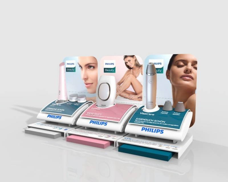 Electronics giant Philips is one of our regular clients. Over the years, we have designed and produced various displays for Philips. We work for different divisions and countries. Each project is unique, and we always come up with a smart custom solution.